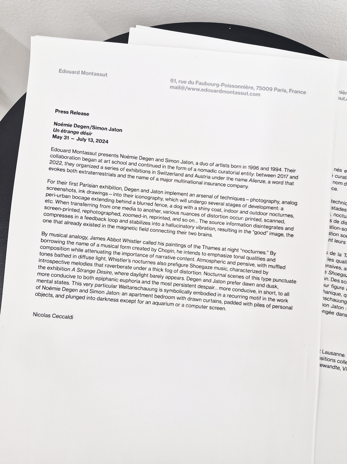 Text by Nicolas Ceccaldi, Edouard Montassut, Paris, May 31 – July 13 2024